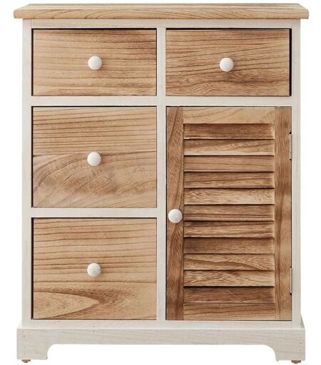 Mobili Rebecca - Rebecca Mobili Armoire Commode Blanc Marron 4 Tiroirs 1 Porte Bois 70x60x30
