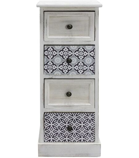 Mobili Rebecca - Rebecca Mobili Commode Table de Chevet Étroite Bois mdf Blanc Gris 4 Tiroirs Vintage Entrée 76x30x25 cm