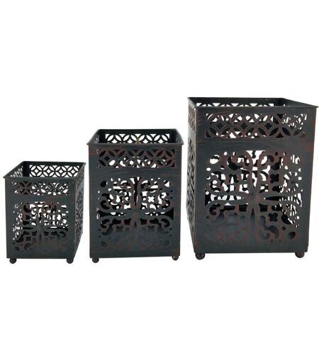 MOBILI REBECCA Rebecca Mobili Lot de 3 Lanternes en Métal Noir Bougeoirs marocains pour l'Intérieur et l'Extérieur