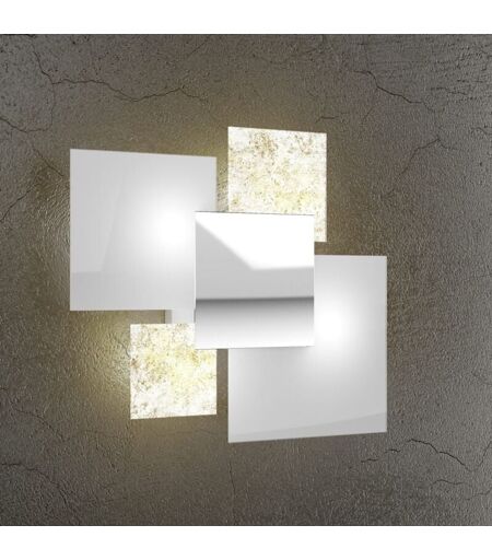 Plafonnier ou applique moderne avec verre blanc et feuille d'or tandis que la plaque centrale est chromée. Collection SHADOW d'appliques ou plafonniers avec structure en métal peint en blanc et plaque frontale en acier poli. Les diffuseurs sont en verre plat extra-clair disponible en différentes finitions. La collection est complétée par une lampe de table en métal chromé et verre blanc et feuille d'or. Plafonnier idéal pour une installation au plafond ou au mur. Les environnements où il trouve les plus grandes applications sont les maisons modernes, les salons ou les chambres. Très élégant et moderne. Cette applique, grâce à son design élégant et moderne, s'installe également dans les bureaux, les commerces ou les showrooms. Ce plafonnier est IP20, donc utilisable en intérieur uniquement. 4 ampoules G9 requises, non incluses. Matériel : Structure en métal peint en blanc, plaque frontale en acier poli et vitre en différentes finitions. Alimentation 230 V CA. Lustre de plafond ou ...