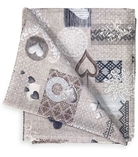 TEX FAMILY NAPPE EN COTON Design tyrolien SHABBY Beige made in Italy Cm. 140x140 x4 personnes
