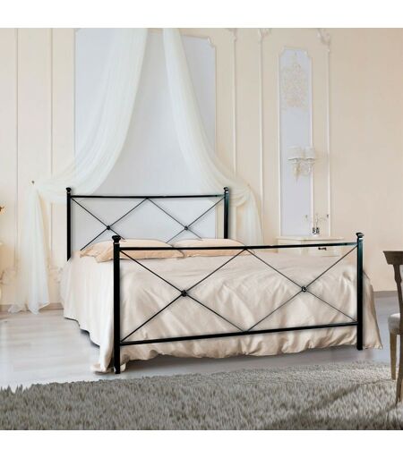 Lit double en fer avec pied de lit ALBA noir Lit de forme traditionnelle Avec ses formes représente le sommet de l'art de la forge. Caractéristiques Lit en fer Couleur noire Marchepied coordonné FILET ET MATELAS NON INCLUS FABRIQUÉ EN ITALIE Dimensions Longueur 166cm Profondeur 208 cm Hauteur tête de lit 117 cm Hauteur du pied de lit 71 cm NB Les dimensions se réfèrent aux dimensions hors tout du lit.Convient pour sommier 160x190 cm ...