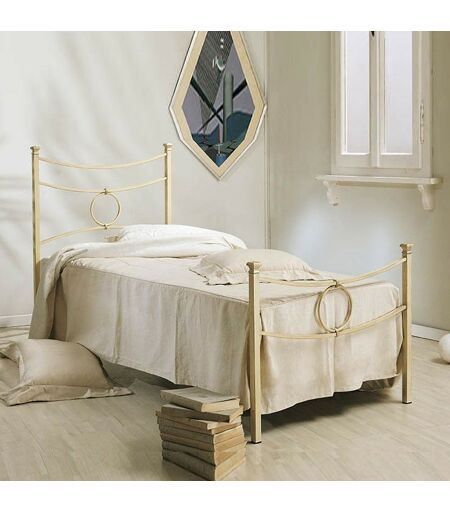 Argonauta - Lit simple en fer avec pied de lit ivoire conca 92x208x h117 cm