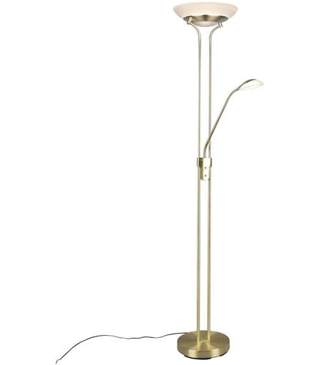 FRANKYSTAR Orson Lampadaire en Laiton Satiné à LED avec Lampe de Lecture à Fonction Variateur et Allumages Séparés H. 180cm