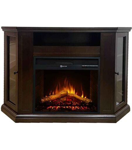 FRANKYSTAR Madison - Cheminée électrique angulaire de sol en bois 126x78xH83 cm, effet flamme, couleur bois noyer