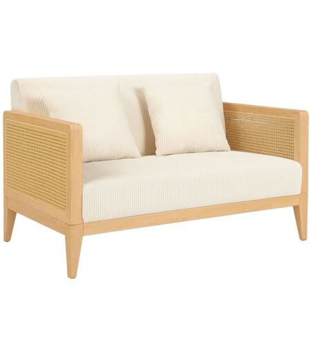 FRANKYSTAR Artena Duo - Canapé 2 Places 143x80x84,5 cm Banquette en Bois Massif et Polyrattan Chêne avec Coussins Blancs