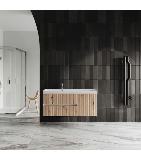 Meuble De Salle De Bain 120cm En Chêne Cannelé Sans Miroir Cortina