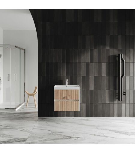 Meuble Suspendu Avec Lavabo 60cm Chêne Doré Cannelé Cortina