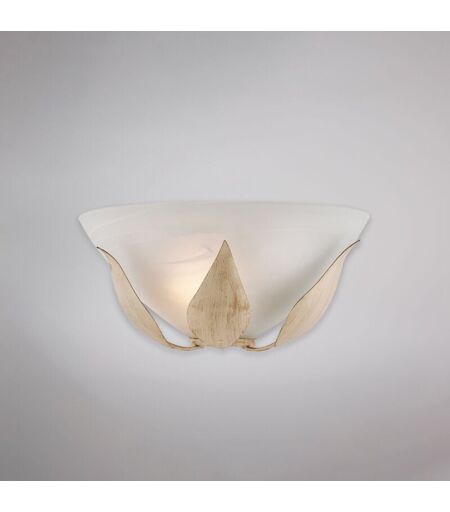 BELIGHT Applique in ferro laccato avorio con decorazione oro antico e diffusore in vetro diametro 30 alabastro bianco 1 luce H.14 - L.30 - P.15