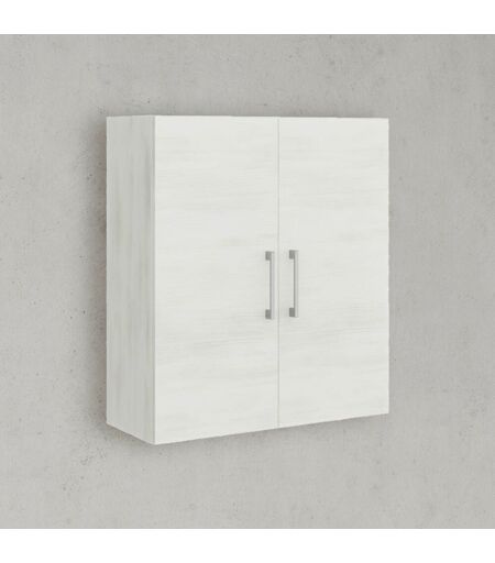 Meuble Suspendu De Salle De Bains 2 Portes Chêne Blanc Et Poignées Chromées Rimini