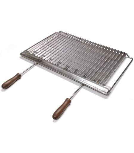 Grille en acier inoxydable Aisi304 18/10 avec 2 poignées en bois amovibles - Grille avec canaux en acier inoxydable et égouttoir pour la récupération et l'évacuation des graisses de cuisson. Robuste, léger et très pratique, grâce à ses canaux en acier inoxydable pour la récupération et l'évacuation des graisses, le grill permet une cuisson parfaite sur les réchauds, barbecues et cheminées. Grille entièrement en acier inoxydable AISI 304 18/10 avec 2 poignées en bois. Le gril est expédié avec la surface de la zone de cuisson recouverte d'un film protecteur, le film doit être retiré. Disponible en 3 tailles : 67x40 cm : Dimensions maximales de la zone de cuisson 58x35,5 cm ; Longueur du manche 25,5 cm 76x40 cm : Dimensions maximales de la zone de cuisson 67x35 cm ; Longueur du manche 25,5 cm 84x40 cm : Dimensions maximales de la zone de cuisson 75,5x35,5 cm ; Longueur du manche 25,5 cm ...