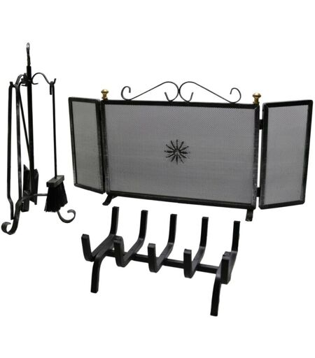 Fonderia Bongiovanni - Kit d'accessoires de cheminée composé de trois éléments : pare-étincelles, perche et poêle à bois