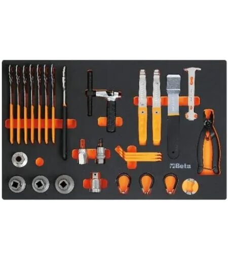 L'outil d'entretien de vélo souple thermoformé 29 Pcs. Beta M400 est un assortiment pratique et complet d'outils disposés sur un plateau thermoformé en EVA. Ce produit s'adapte parfaitement à tous les modèles de tiroirs et de chariots d'atelier Beta, mais convient également à d'autres solutions d'ameublement. Cet article propose un ensemble de 29 pièces d'outils à main pour l'entretien des vélos, comprenant notamment : - 1x Beta 3932U Professional chain breaker compatible pour les chaînes de 5 à 11 vitesses - 1x Beta 3935 Chain wear indicator 120 mm- 1x Beta 3937 Pince à visser 170 mm - 7x Beta 3952 Clés coniques simples de 13 - 14 - 15 - 16 - 17 - 18 - 19 mm - 1x Beta 3961 3.3.1.1.1.1.1.1.1.1.1.1.1.1.1.1.1.1.1.1- 1x Beta 3961 3.2 Noir 3.2 mm - 1x Beta 3961 3.3 Vert 3.3 mm - 1x Beta 3961 3.5 Rouge 3.5 mm - 1x Beta 3961U Professionnel 3.2 - 4 mm - 1x Beta 3961U Professionnel 3.2 - 4 mm - 1x Beta 3962U 3.2 - 4 mm - 1x Beta 3962U 3.2 - 4 mm - 1x Beta 3962U 3.2 - 4 mmbr>- 2x Beta ...