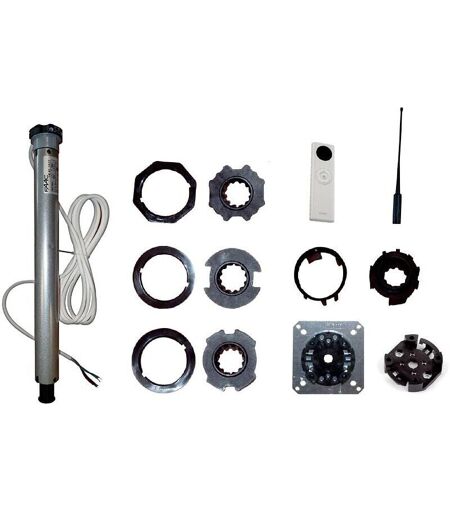 Pour volets roulants en aluminium ou PVC. Le kit Reno permet le remplacement d’une motorisation existante en utilisant l’axe d’enroulement existant. Moteur tubulaire autofreinant permettant en cas de coupure de courant de laisser le volet dans la position où il se trouve. Commande radio permettant d'actionner plusieurs volets. Tension : 230 Vca. IP44. Composition : -1 moteur tubulaire,-1 système de commande radio,-4 adaptateurs,-2 supports moteur. ...