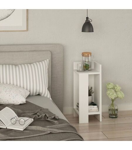 Table de chevet design blanc Elos Découvrez la table de chevet design blanc Elos, parfaite pour tout environnement. Avec des dimensions compactes de 27x25x60 cm, cette table de chevet offre une excellente solution pour optimiser l'espace sans renoncer au style. Caractéristiques : - Panneau de particules de haute qualité d'une épaisseur de 18 mm. - Revêtement en PVC. - Dimensions 27x25x60 h cm. - 2 étagères. - Couleur blanche. - Charge maximale 20 kg. - Version droite. - Produit livré démonté. ...