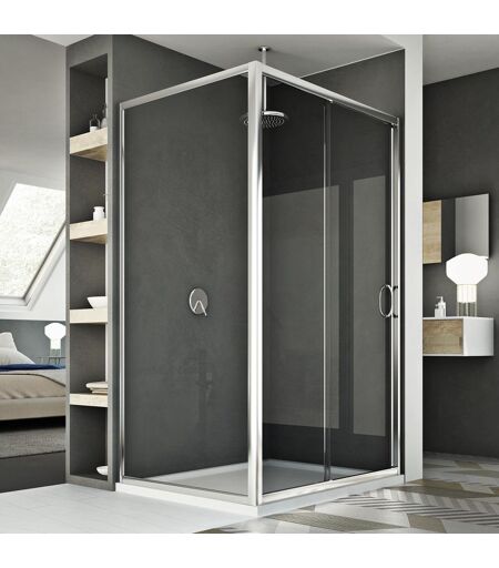 Idralite - Parois cabine de douche coulissante rectangulaire verre transparent h 185 mod. Replay Duo 1 porte 80X100 cm