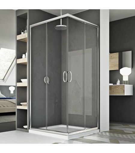 Idralite - Parois cabine de douche angulaire verre transparent h 185 mod. Junior 100X120 cm rectangulaire