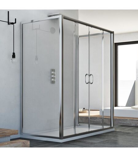 Les cabines de douche modèle Replay Trio avec 2 portillons se caractérisent pour la simplicité du système de glissement à vue et pour la praticité assurée par le mécanisme du portillon coulissant. Verre de sécurité de 6mm, les verres et les joints sont de qualité. Les lignes juvéniles et fonctionnelles relient le design à la durée. Les portillons coulissants déclipsable facilitent le nettoyage du produit. Caractéristiques: Cabine douche à 3 côtés 70x130x70 CM composée de 2 parois fixes de 70 CM et 1 côté avec 2 volets fixes et 2 portillons coulissants de 130 CM Système de glissement des portillons coulissants avec une couverture chromée et 16 roulettes en nylon avec roulements à billes. Système Click&Clean; pour décrocher et accrocher rapidement les portes à la fin de faciliter le nettoyage Hauteur du produit: 185 CM Ouverture de la porte: 50 CM Verre de sécurité tempré épaisseur 6mm trasparent li>Profilés en aluminium anodisé avec revêtement chromé Fermeture maqnétique des portes ...