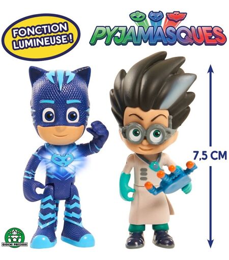 Geomag Pyjamasques Pjm Blister 2 Figurines 7,5 Cm - Asst (1 Fig. Héros Lumineuse + 1 Fig. Vilain Avec Acc)