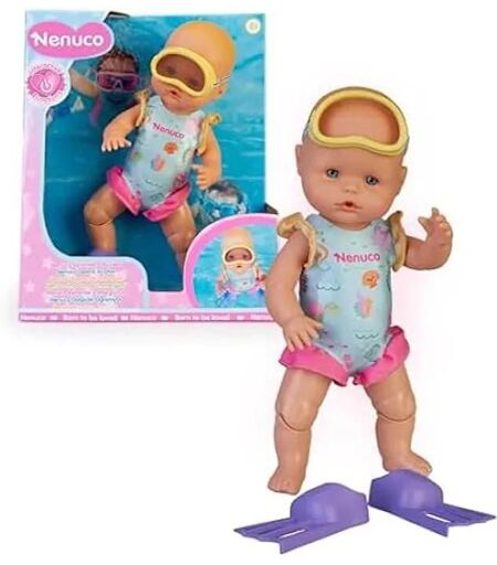 La poupée Nenuco de 35 cm avec corps dur peut nager seule dans la piscine ou la baignoire. Elle est équipée de palmes et de lunettes de plongée pour une expérience de jeu plus réaliste. Convient aux enfants à partir de 3 ans. ...