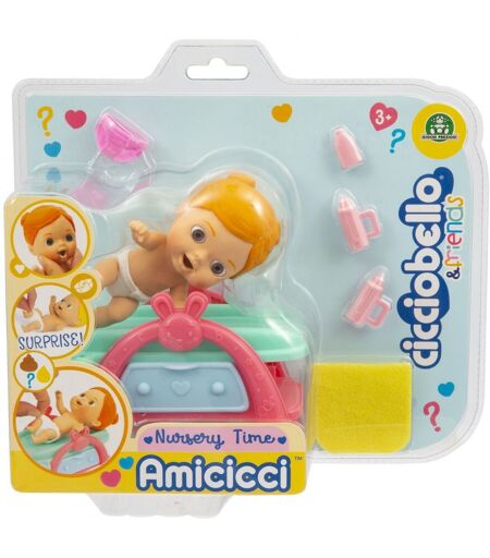 Les Cicciobello Amicicci de Giochi Preziosi sont de petits b?b?s souples de 10 cm qui se comportent comme de vrais b?b?s. Ils font des mouvements du corps ?tonnants, avec plein d'expressions de visage amusantes. Bien install? sur la table ? langer, votre enfant pourra d?sormais lui changer la couche avec le Coffret Nursery Cicciobello Amicicci. Oh une surprise ! Mais que va d?couvrir votre enfant dans la couche de son poupon : un pipi ou un caca ? Une fois, le change termin?, votre enfant pourra ensuite ranger tous ses accessoires dans les tiroirs. Contient : 1 Cicciobello 10 cm, 1 couche surprise, 1 couche propre, 1 table ? langer et des accessoires. ...