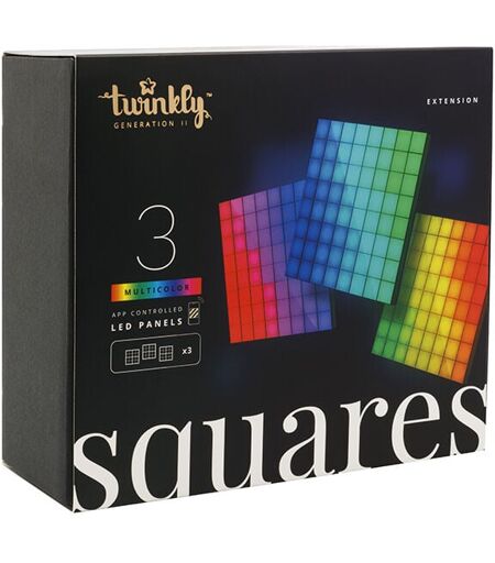 Description du produit : Les panneaux muraux LED intelligents révolutionnaires Twinkly Squares redéfinissent complètement l'éclairage décoratif. Que vous souhaitiez des œuvres d'art et des GIFs au pixel près pour votre maison ou votre bureau, une ambiance cool et un éclairage d'humeur, des lumières de jeu réactives ou une veilleuse unique pour les enfants, Squares est un écran d'affichage et une décoration lumineuse incontournables. Ces 3 panneaux décoratifs comportent chacun 64 LED adressables de qualité supérieure, contrôlées par une application, qui ont été conçues pour une luminosité et une qualité de couleur extraordinaires dans plus de 16 millions de couleurs. Combinez physiquement ce kit d'extension avec un panneau maître et jusqu'à 12 panneaux supplémentaires (vendus séparément), et utilisez l'application Twinkly pour synchroniser de plus grands groupes de Squares et créer d'énormes affichages d'effets, d'animations, de GIFs et de pixel art préréglés et personnalisables ...