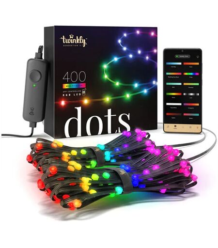 Dots – Guirlande Lumineux Flexible Contrôlé par une Application avec 400 LEDs rgb 20 Mètres. Fil Noir. Intérieure et Extérieure - Twinkly