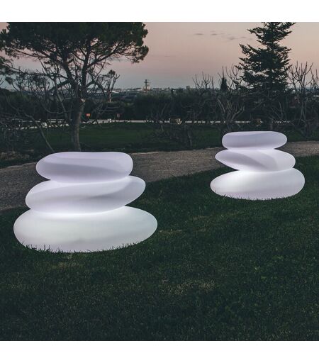 Description générale EDEN est un accessoire décoratif original, idéal pour embellir vos espaces intérieurs et extérieurs. Sa composition unique de trois pierres superposées attire le regard et s'intègre parfaitement dans des ambiances modernes ou plus sophistiquées comme le feng shui. Spécifications techniques Couleur : Blanc Dimensions : 75x62 cm Hauteur : 47 cm Profondeur : 22 cm Volume : 15 litres Finition : Sablée Matériau : Polyéthylène écologique et recyclable Résistance : Matériaux résistants aux chocs et aux intempéries Indice de protection : IP44 selon la législation CEI EN 60529/1997 Économie d'énergie : Lampe de 20W (E27) - 220/240V - 50/60 Hz Câble : Noir de 3 mètres avec ampoule montée Durabilité : La couleur ne s'altère pas avec le temps Entretien : Facile à nettoyer sans détergents Fabriqué en Italie Compatibilité et accessoires Compatible avec divers environnements de décoration intérieure et extérieure. Peut être utilisé comme lampadaire décoratif. Installation ...