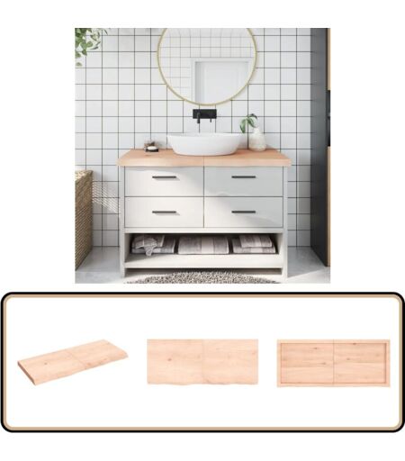 VidaXL Comptoir de salle de bain 120x50x(2-6)cm bois massif non traité Vous envisagez de rénover vos comptoirs chez vous ? Ce comptoir de salle de bain en bois est un choix parfait ! Construction durable : ce plan de travail de salle de bain est fabriqué en bois de chêne massif, un beau matériau naturel. Le bois de chêne a une couleur brun moyen et un grain dense, contribuant à son aspect unique. Grâce au design avec charnières, il peut être plié et rangé dans des espaces étroits. Applications polyvalentes : outre un plan de vasque de salle de bain, ce comptoir en bois peut être combiné avec différentes bases selon vos besoins. Il peut être utilisé comme étagère, dessus d'armoire, dessus de bureau, dessus de table, etc. Surface non traitée : comme le dessus de salle de bains est fabriqué en bois de chêne massif sans finition, vous pouvez conserver sa couleur naturelle, mais aussi le peindre ou le laquer comme vous le souhaitez. Fait à la main avec un bord vivant : ce comptoir de ...