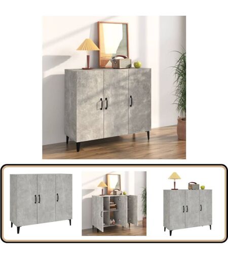 VIDAXL Buffet gris béton 90x34x80 cm bois d'ingénierie - Buffet - Meuble De Rangement - Mobilier Industriel - Commode - Étagère Ouverte