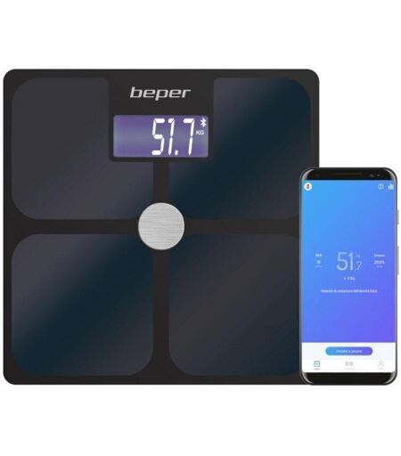Electrical impedance body scale with app Electrical impedance body scale measuring 21 body indicators: Body shape, Nutrition, Weight, BMI, % Fat mass, Muscle weight, Visceral fat, Water level, Bones, Basal metabolism, Weight Fat mass, Skeletal muscle, Water weight, Protein weight, ideal weight, weight control, control fat, muscle control, body years, % protein, lean mass. The tempered glass panel is coated with indium tin oxide electrodes (ITO - indium tin oxide), extremely sensitive and able to detect, with speed and high precision, the body composition. Built-in bluetooth technology to transmit data directly to your smartphone via the Scaleup app (available for iOS and Android) and synchronizes with Google Fit, Fitbit and Apple Health apps. Statistics of historical data collected to monitor the trend and possibility to download the data in pdf format. Multiple users to create profiles for the whole family and ability to share data with the community. Measurement precision. Touch ignition and large backlit LCD display. Indicator of overload and low battery, automatic shutdown. Product size: 30 x 30 x 2,5 cm Material: Tempered glass/ABS Batteries: 2xAAA (not included) ...