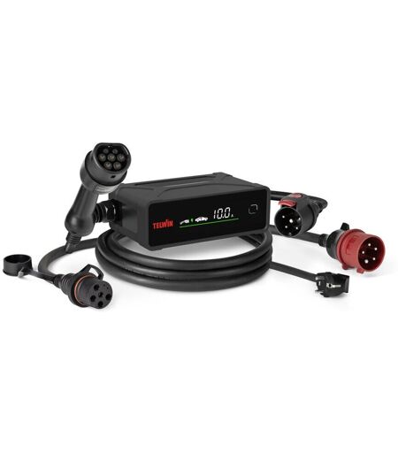 Profitez d’une flexibilité et d’un contrôle optimaux lors de la recharge de votre véhicule électrique ou hybride rechargeable avec le Telwin Mastercharge Flex 22. Cette station de charge portable et puissante fonctionne en courant alternatif (AC) et convient aux installations monophasées (230V) et triphasées (400V) – idéale à la maison, en déplacement ou pour un usage professionnel. Grâce au câble de charge de 6,5 mètres avec connecteur Type 2 et aux câbles d’alimentation 230V et 400V fournis, vous êtes toujours prêt à faire face à toutes les situations de recharge. L’écran numérique intégré affiche en temps réel les informations de charge, tandis que le menu vous permet de régler facilement le courant de charge (réglable de 6A à 32A) et de programmer la recharge pour une gestion énergétique optimisée. ...