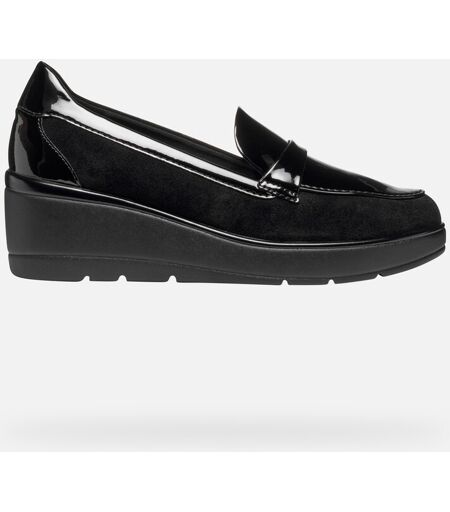 Mocassins pour femme au design essentiel et contemporain qui allient confort et style sophistiqué. Mocassins pour femme au design essentiel et contemporain qui allient confort et style sophistiqué. Modèle réalisé en cuir velours souple noir avec des détails raffinés en matière à effet cuir verni qui ajoutent une touche d’élégance moderne. Les Ilde sont le complément idéal pour les tenues quotidiennes et sont parfaites pour se déplacer avec désinvolture et style dans les rues de la ville. ...