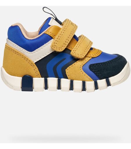 Sneakers premiers pas pour bébé souples et amorties, qui garantissent un confort maximal lors des premières explorations. Sneakers premiers pas pour bébé souples et amorties, qui garantissent un confort maximal lors des premières explorations. Dans cette version qui associe le jaune et le bleu, ces chaussures sont réalisées en matière à effet cuir et cuir velours pour assurer une respirabilité parfaite. Les Iupidoo sont les chaussures idéales pour accompagner les premiers pas quotidiens avec légèreté et en toute sécurité. ...