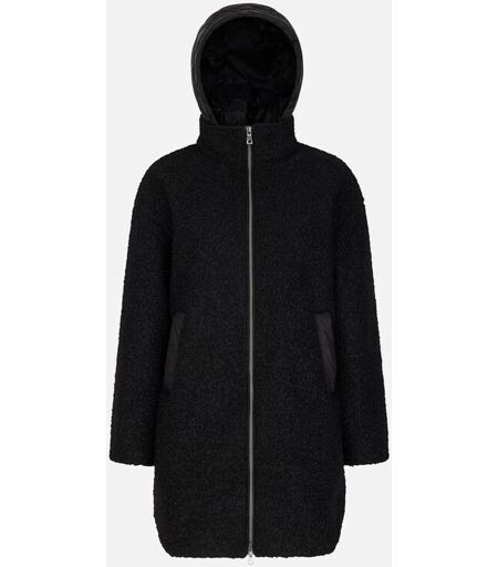 Manteau long pour femme à capuche amovible, conçu pour offrir protection contre le vent et confort en toutes circonstances. Manteau long pour femme à capuche amovible, conçu pour offrir protection contre le vent et confort en toutes circonstances. Dans cette variante noire, ce modèle est réalisé dans un mélange raffiné de tissu bouclé et nylon recyclé, rehaussé par un rembourrage et une doublure intérieure recyclés qui garantissent chaleur et respiration. Le modèle Calithe constitue le choix idéal pour les journées en ville, lorsque l’on souhaite allier style contemporain et commodité métropolitaine. ...