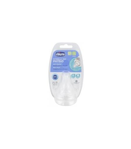 Chicco Tétine Physiologique Anti-Coliques Silicone - Flux Lent - 0M+ - X2 - Blister 2 tétines