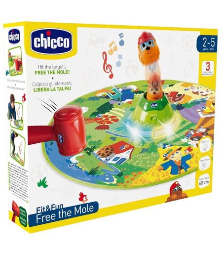 Libère la taupe de son terrier ! Free the Mole est un tapis électronique sur le thème de la ferme avec 3 modes de jeu différents. Ce jeu offre 8 zones interactives qui stimulent les capacités motrices et de stimulus-réponse tout en s'amusant. Previous 1. MODE LIBRE Le premier mode de jeu aide votre enfant à reconnaître chaque zone ainsi que le son et la couleur qui lui sont associés. Il peut sauter sur le tapis ou utiliser le marteau librement pour découvrir les zones. Après avoir touché un nombre aléatoire de zones, la taupe sera libérée : bravo ! 2. LUMIERES ET SONS Le jouet active un son et une lumière qui sont liés à un élément : par exemple, le son du tracteur et la lumière jaune pour la zone du tracteur. Le bébé doit identifier la bonne zone et appuyer sur l'icône du marteau. Après avoir appuyé sur tous les éléments indiqués, la taupe sera libérée : bravo ! 3. COMPTE A REBOURS Le troisième mode de jeu est le plus stimulant : comme dans le deuxième mode de jeu, votre enfant doit appuyer sur la bonne zone en fonction du son et de la lumière reproduits, mais... cette fois, le défi est plus difficile ! Il disposera d'un temps limité pour activer les zones : s'il y parvient, la taupe sera libérée dans le cas contraire, il devra réessayer. 8 zones interactives Le tapis offre 8 zones interactives que le bébé peut identifier grâce au lien de chaque zone avec un son et une couleur spécifiques et le symbole du marteau. Les 8 zones sont : la vache, la cloche, le tracteur, l'épouvantail, le moulin, la mare et les canards, le moulin à vent, les poules... Hit the elements with the hammer or by hand/foot Pour développer ses capacités de stimulus-réponse et de motricité, votre enfant peut appuyer les éléments à l'aide du marteau fourni ou à la main ou au pied. Cela rend ce tapis encore plus interactif et engageant ! Effet de surprise garanti ! Chaque fois qu'un nouveau match commence, le jouet requiert un nombre différent d'éléments à activer afin de libérer la taupe: votre enfant ne connaîtra jamais le nombre exact d'éléments à identifier, de sorte qu'il aura toujours un effet de surprise ! Next 1 2 3 4 Avant toute utilisation, veuillez lire attentivement les étiquettes et les avertissements figurant sur l'emballage du produit.BREAKLINE Amuse toi à faire sortir la taupe de son terrier en tapant sur les différents points d'interaction dès que tu entends un son. 3 modes de jeu ...