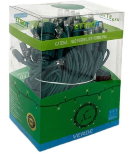 Crylight-Ettroit se'rie 100 lumie'res de Noel led vertes chaine de 10 m avec cable vert de flash de glace pour exte'rieur IP44 extensible professionnel et certifie' Verde 10 metri - 100 MaxiLed Bianco Ghiaccio ...