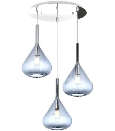 Top-light - Suspension moderne Kona 3 lumières verre bleu et rosace ronde - Culot E27 - Réglable jusqu'à 250 cm d.42