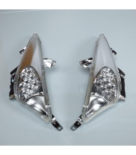 Paire de clignotants avant à LED neufs, avec vitre transparente et fond chromé. Ces clignotants équipés de 8 LED s'éclairent en orange. Centrale clignotante adaptée fournie. Livré conforme à la photo. ...