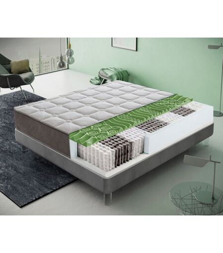Matelas à ressorts ensachés, mousse à mémoire de forme 4 cm,plus de 7 zones de confort Matelas à ressorts ensachés, mousse à mémoire de forme 4 cm,plus de 7 zones de confort est un matelas à ressorts ensachés indépendants La hauteur du matelas est de 25 cm. Il est doté d'une couche de mousse à mémoire de forme de 4 cm Les ressorts ont une hauteur de 14 cm et sont fabriqués en fil d'acier au carbone phosphaté. Ce matelas a 700 ressorts dans la taille 140x190. Peu importe la position dans laquelle vous dormez, sa structure interne et ses matériaux innovants améliorent la respirabilité du produit, en empêchant la sensation de chaleur et l'accumulation d'humidité. Il apporte un grand soutien à la zone des épaules et du bassin. Le matelas a une rigidité de 8/10,c'est un produit de soutien, idéal pour le dos. Entièrement fabriqué en Italie Durée de la garantie : 5 ans Il porte le marquage CE et les matériaux sont certifiés. Fiche technique Type de matelas: ressorts ensachés Niveau de ...