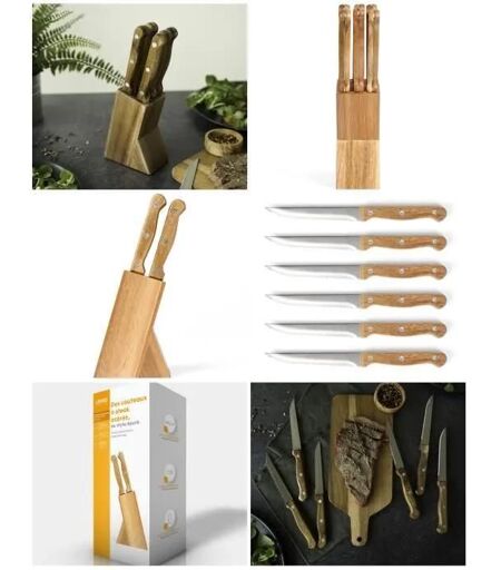 Livoo Bloc De 6 Couteaux À Steak En Bois D¿Acacia Aux Finitions De Qualité