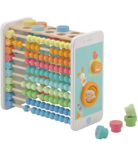 Apprendre en s'amusant : A, B, C... 1, 2, 3... Ce jeu d'éveil en bois 4 en 1 est riche en activités pour le plus grand plaisir des enfants : sur l'une des faces, un boulier coloré qui leur apprendra à compter et à évaluer le dégré de leurs émotions grâce à des émoticônes, sur l'autre, un abécédaire pour apprendre l'alphabet où chaque lettre correspond à un animal (en anglais). D'un côté, une petite horloge pour app ...