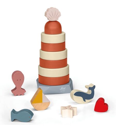 Cette tour en bois à empiler exerce les plus petits à trier les différents éléments, à les empiler selon leur taille et à les emboîter les uns sur les autres. Pièce par pièce, on obtient ainsi un superbe phare, dont la construction permet de développer la motricité, la coordination ?il-main et la compréhension des couleurs et des tailles. Ce phare empilable, composé de 15 pièces en bois, est orné de cinq adorables personnages m ...