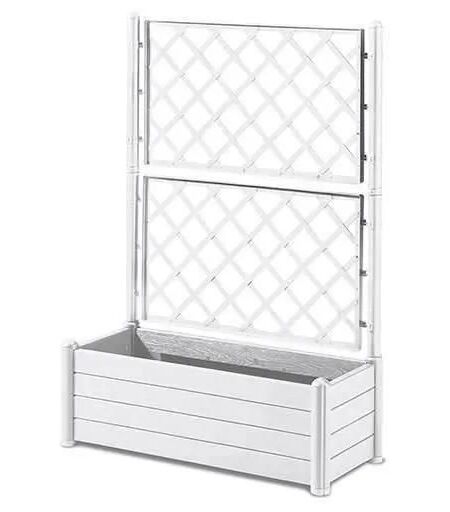 Stefanplast Bac A Fleurs Rectangulaire Avec Treillis - Finition En Bois - 100 X 43 X H 142 Cm - 80 L - Blanc