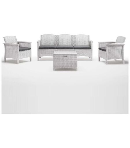Bica - Salon de jardin Venezia iii canape' trois places fauteuils et table basse en polypropyle'ne effet rotin blanc avec coussins