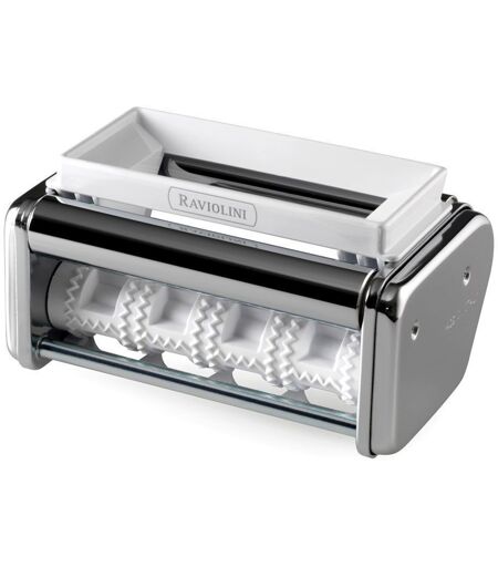 Accessoire réalisé en acier chromé avec des rouleaux en ABS alimentaire Il comprend une cuillère doseuse particulièrement pratique Les Raviolini sont un format de pâtes farcies de forme carrée d'une largeur de 30 mm L'épaisseur conseillée de la feuille de pâte correspond à la position n° 6 du régulateur de la machine à pâtes Adaptable sur la machine à pâtes Atlas 150 ...