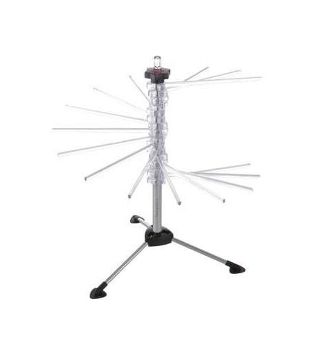 Ce séchoir est l'accessoire indispensable pour faire sécher les pâtes avant leur cuisson ! Grâce à ses 16 bras, il est possible d'étendre jusqu'à 2 kg de pâtes fraîches dans un espace réduit. Pratique : la baguette rangée dans la colonne centrale permet de récupérer les pâtes directement dans la machine et de les étendre facilement. L'étendoir à pâtes s'ouvre en éventail et se ferme de manière simple et rapide, en occupant très peu d'espace. Pour le nettoyer, il suffit d'utiliser un chiffon et un pinceau. La structure de ce séchoir est solide et reste bien en équilibre pendant le séchage des pâtes. Lorsqu'il est ouvert, l'étendoir à pâtes mesure moins de 50 cm. ...