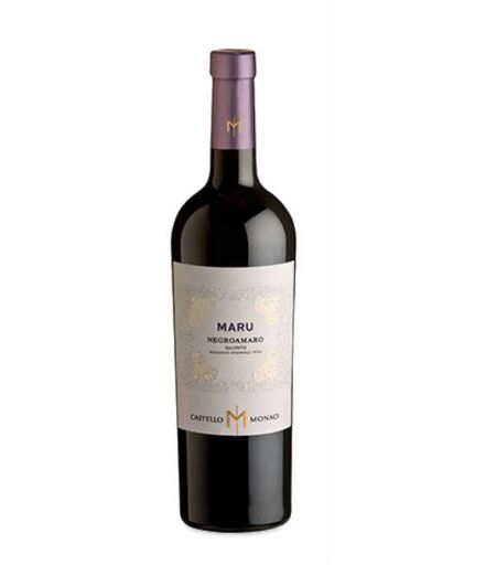 Castello Monaci Negroamaro Maru est un vin rouge à base du cépage Negroamaro. Il est élaboré dans la IGT Salento (Pouilles) par la cave Castello Monaci. La cave Castello Monaci se trouve dans le Salento, une région de l’Adriatique, située dans le « talon de la botte » à l’extrémité sud-est de l’Italie. La cave, qui mise sur les cépages autochtones et sur la tradition vinicole de la région, est construite avec le tuf typique. Les noms d'origine mythologique des élaborations de ce domaine, tels que Medos, Kreos, Maru et Piluna, reflètent sa manière de travailler ancestrale. Castello Monaci Negroamaro Maru provient de vignobles du cépage Maru ou Uva Negra. Un cépage cultivé de manière très équilibrée dans les Pouilles grâce à la lumière intense du soleil qui baigne cette terre toute la journée et aux vents maritimes constants provenant de la mer Adriatique et de la mer Ionienne. Les vignerons y pratiquent une agriculture durable certifiée par DNV-GL, une entreprise reconnue dans le monde entier. Chaque parcelle est cultivée séparément et les vendanges sont effectuées la nuit pour assurer la meilleure qualité du raisins. Dans la cave, les raisins du Castello Monaci Negroamaro Maru sont sélectionnés minutieusement, avant d'être pressés dans un système de refroidissement à l'intérieur de cuves en acier inoxydable thermo-conditionnées. Une partie du vin est vieilli pendant 6 mois en fûts français et le reste dans des cuves en acier inoxydable. Le Castello Monaci Negroamaro Maru est un vin rouge à base du cépage autochtone Negroamaro, qui, bien que son nom signifie amer et noir, dégage plutôt une saveur douce de fruits mûrs. ...