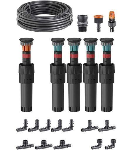 Description générale Le kit d'installation d'arrosage enterrée Colibrì de Claber est conçu pour aménager un système de micro-irrigation souterrain dans un jardin allant jusqu'à 50 m². Ce kit complet est extensible, permettant d'ajouter d'autres micro-arroseurs et accessoires selon vos besoins. Son installation est simple et ne nécessite aucun branchement électrique, tout en garantissant une faible consommation d'eau. Spécifications techniques Marque : Claber Référence fournisseur : 90200 Type de produit : Kit de réalisation d'installation Surface jardin : jusqu'à 200 m² Composants inclus : 1 micro-asperseur 360°, 4 tuyères 180°, 25 m de tuyau d'alimentation 1/2", 3 raccords à trois sorties 1/2", 2 coudes à 90°, 24 colliers de serrage, 1 raccord automatique 3/4", 1 soupape de vidange. Compatibilité et accessoires Le kit est compatible avec d'autres accessoires du système Colibrì, permettant une extension jusqu'à 200 m². Il peut également être automatisé avec un programmateur à robinet. ...